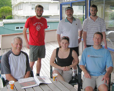 The MOA and uFUN astronomy teams squared off at tennis at Mission Bay Tennis Club on 16 Nov 2008. MOA had the home court advantage and more supporters and narrowly won. Here are Phil Yock (MOA), Eike von Seggern (MOA), Yvette Perrott (MOA), Grant and Duncan Christie (uFUN) and Simon Yock (MOA) after the match.