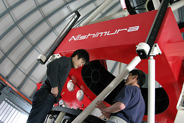Yuji Nishimura, Takashi Sako and Tomohiro Sekiguchi of the telescope at various