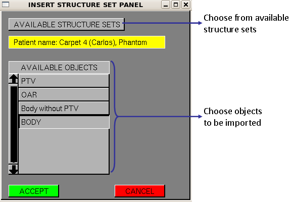 all available structures for the chosen patient. The objects to be